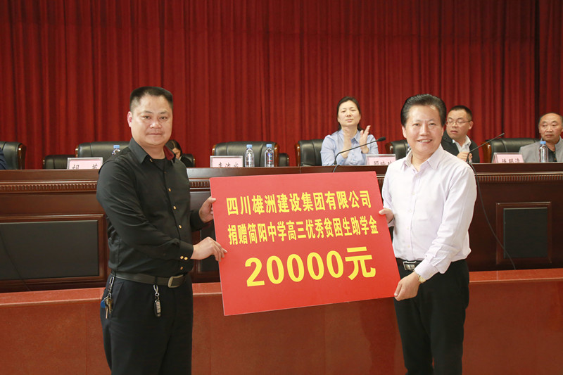 【概要描述】2017年雄洲集團(tuán)董事長李方明同志捐贈(zèng)、慰問貧困學(xué)子2018年四川雄洲建設(shè)集團(tuán)有限公司幫扶共建為高考加油·為夢想助力2018年3月15日,簡陽市工商聯(lián)(商會(huì))組織開展了以“為高考加油·為夢想助力”為主題的“愛心企業(yè)簡中行”、“愛心企業(yè)陽安行”公益活動(dòng),共資助110名高三優(yōu)秀貧困生,捐資共計(jì)11萬元。市委常委、統(tǒng)戰(zhàn)部部長,市總工會(huì)主席顧曉玲,市政協(xié)副主席、市工商聯(lián)主席、市商會(huì)會(huì)長陳明清出席活動(dòng)。四川誠卓房地產(chǎn)有限公司、四川雄洲建設(shè)集團(tuán)有限公司、四川簡陽銀河房地產(chǎn)開發(fā)有限公司、四川帝王潔具股份有限公司參與了此次活動(dòng)。市商會(huì)副會(huì)長、四川雄洲建設(shè)集團(tuán)有限公司總經(jīng)理李流成代表捐助企業(yè)發(fā)言。他表示,企業(yè)在發(fā)展過程中都得到了市委、市政府以及社會(huì)各界的關(guān)心和支持,企業(yè)也一直以積極的行動(dòng)回饋社會(huì)。以后將積極倡導(dǎo)有更多的工商界和社會(huì)各界人士投身到各項(xiàng)社會(huì)公益事業(yè)中來,以感恩的心回饋社會(huì),譜寫出實(shí)現(xiàn)共同富裕的華彩樂章。陳明清主席介紹了活動(dòng)背景,對(duì)參與愛心助學(xué)的企業(yè)表達(dá)了誠摯的謝意,并勉勵(lì)同學(xué)們要以大無畏的勇氣接受高考這場挑戰(zhàn),攻堅(jiān)克難,以優(yōu)異的成績回饋社會(huì)各界的關(guān)愛。顧曉玲常委對(duì)